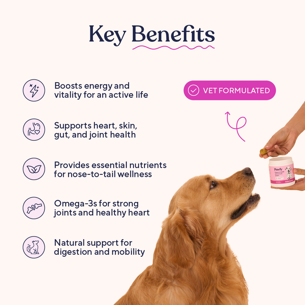 A tasty multivitamin chew a day gives them everything they need to wag, walk and play.