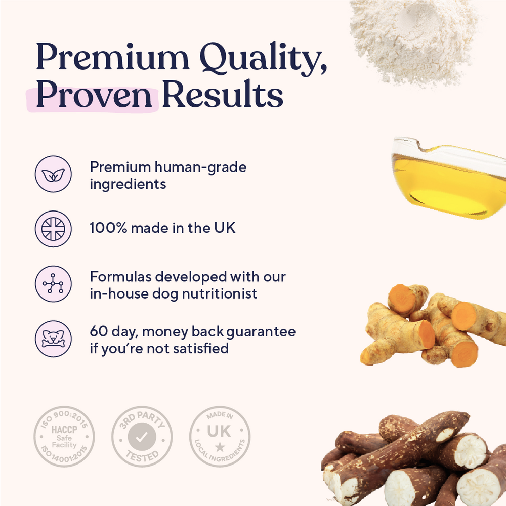 With omega-3s nourishing their coat and skin and yucca providing joint support, your dog may show signs of improved mobility, along with a shinier, healthier coat.
